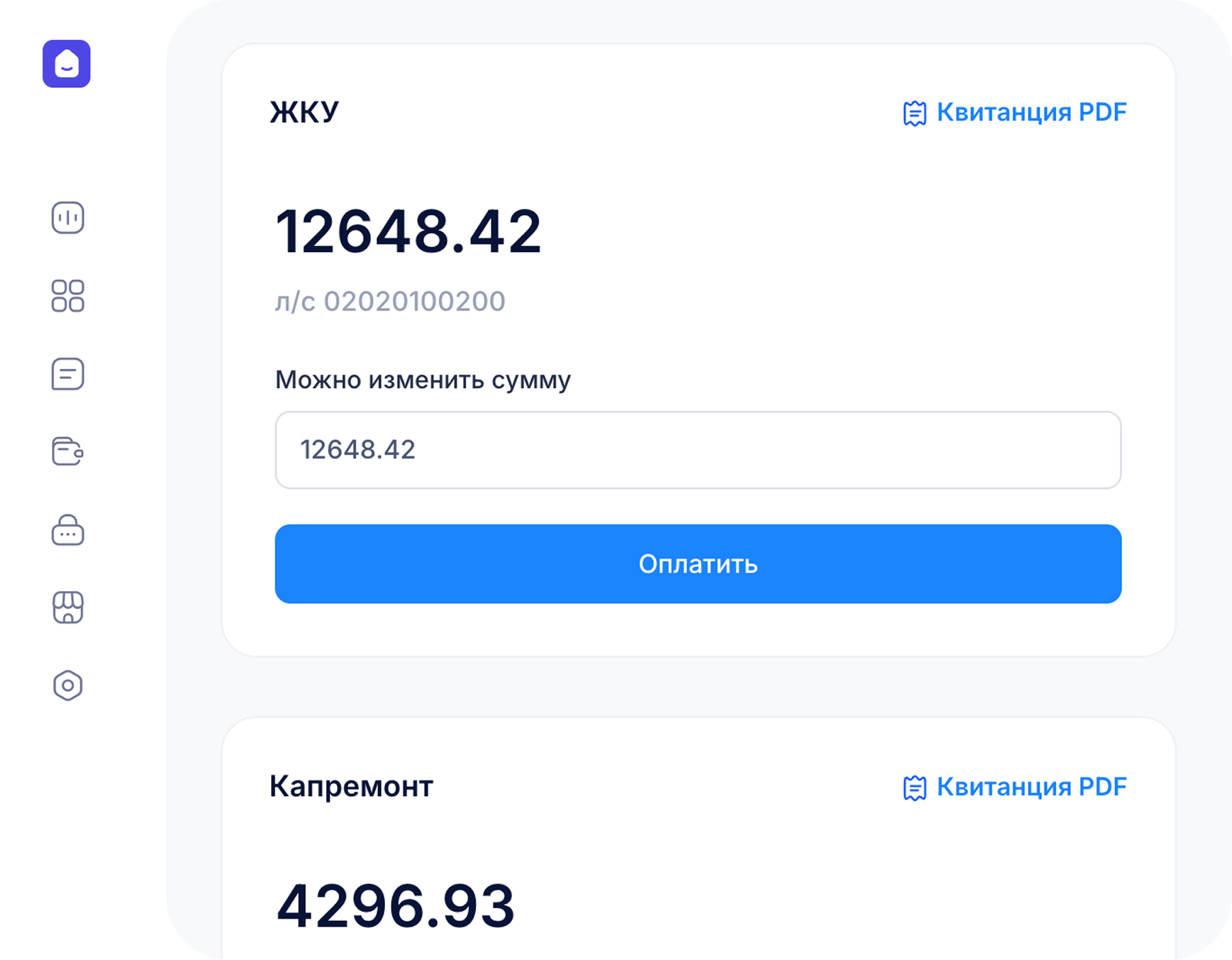 Push-уведомления о задолженности. Возможность оплаты счетов за ЖКУ и капитальный ремонт онлайн.