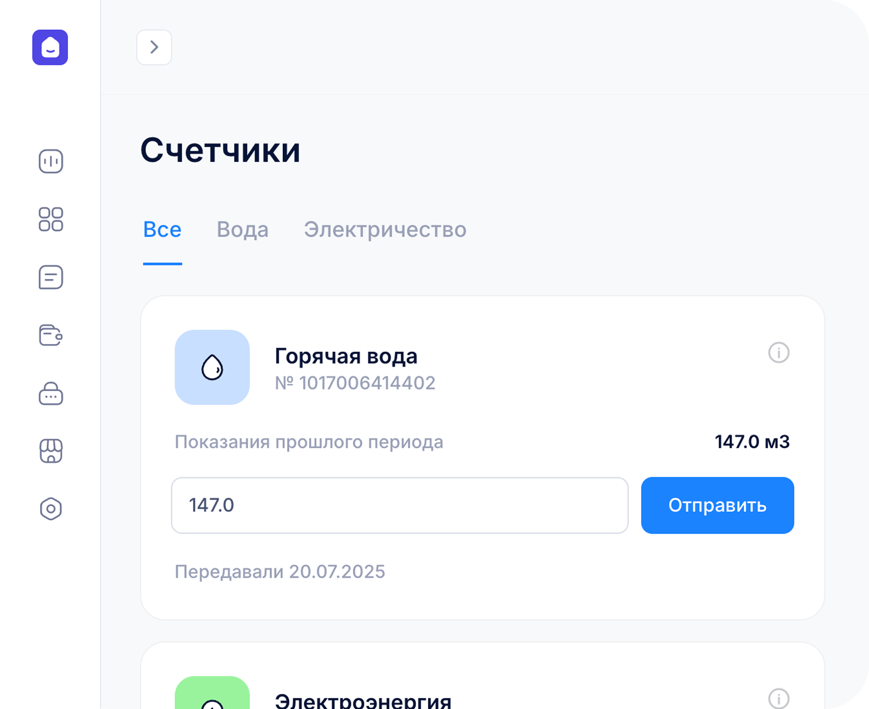 История показаний приборов учета. Автоматическая передача показаний. Возможность устанавливать период передачи.