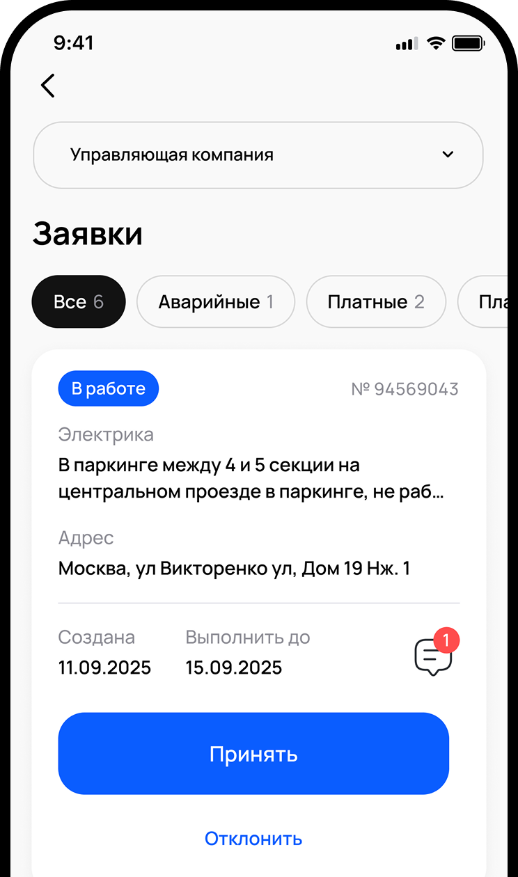 Заявки направляются нужным специалистам, что снижает нагрузку на диспетчерскую