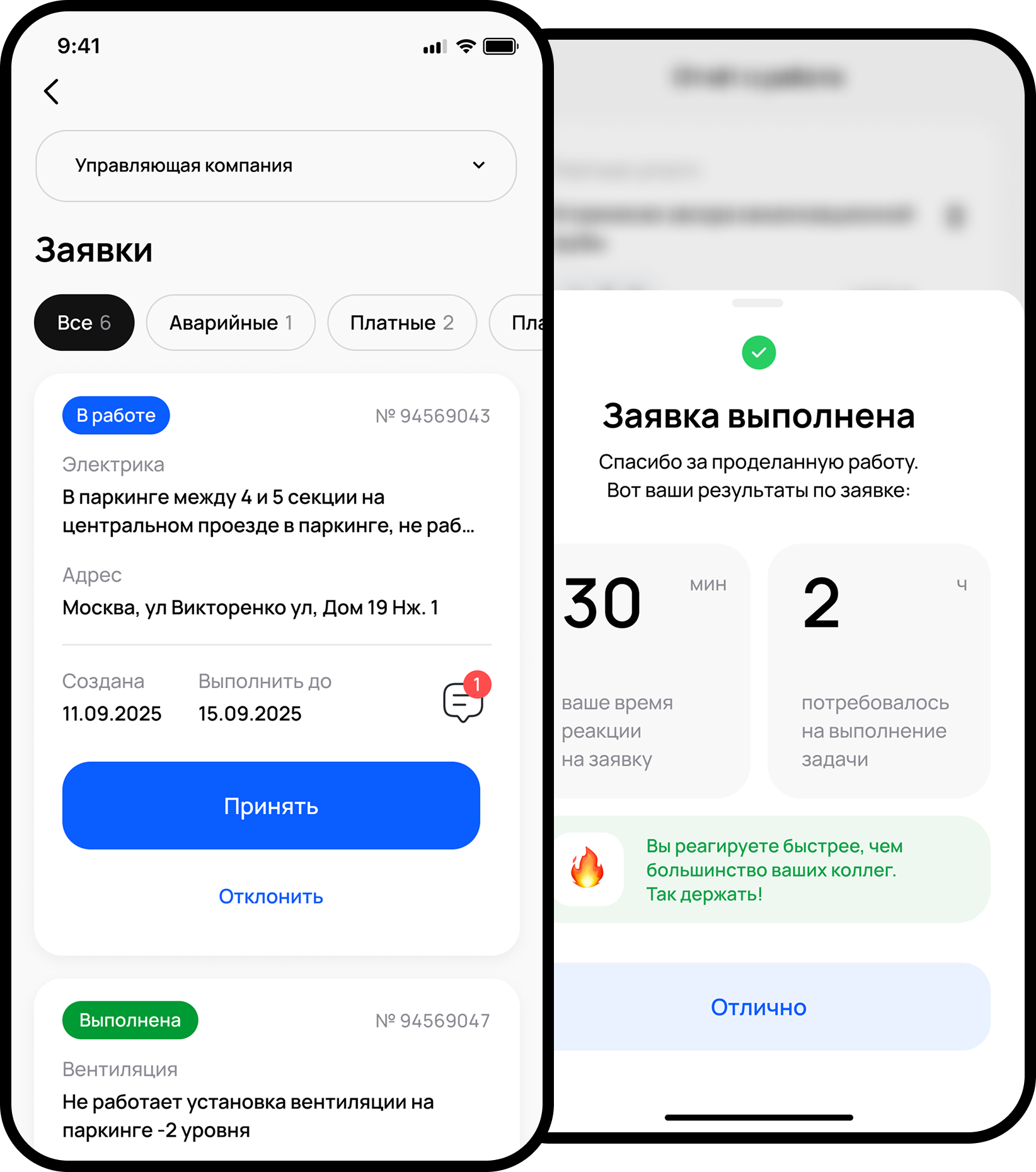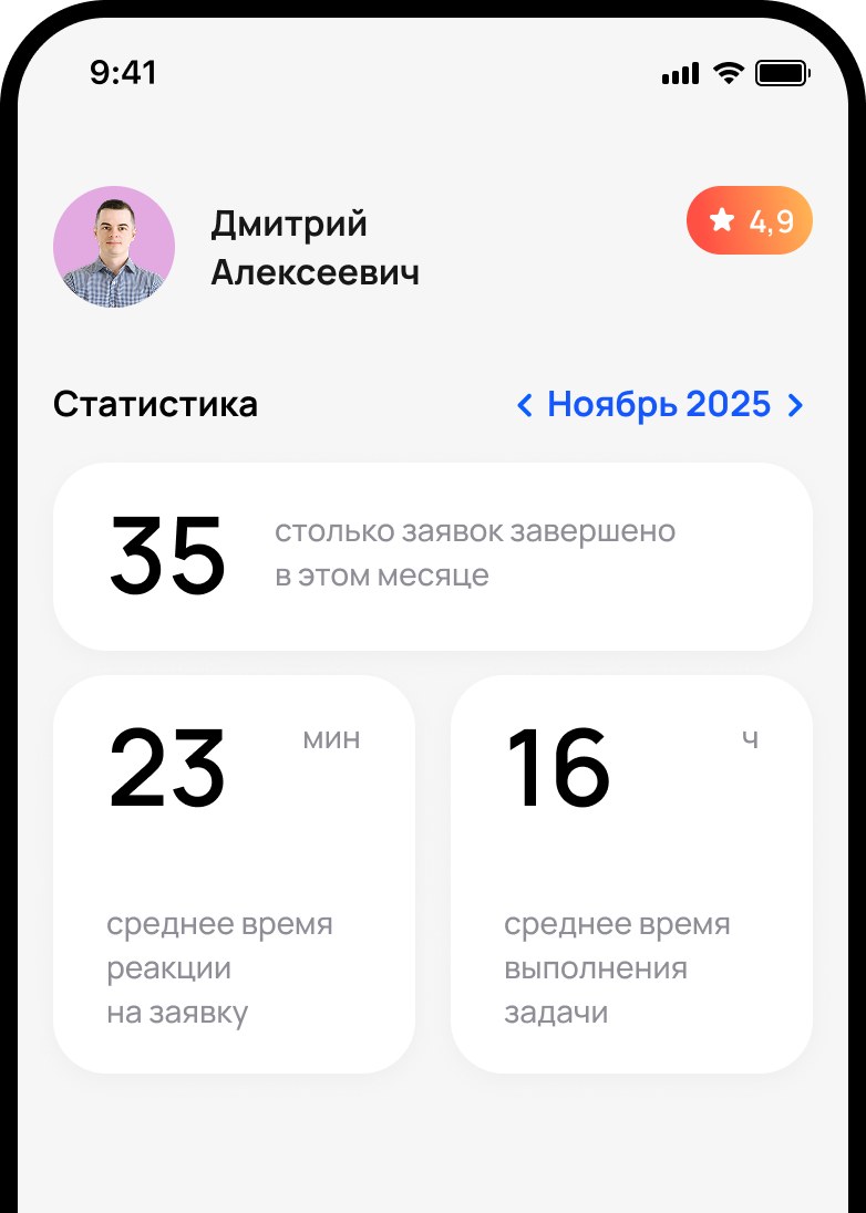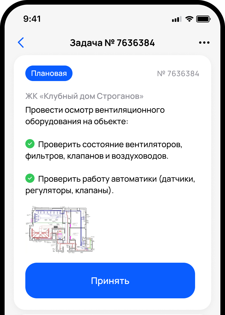 Работа с заявками, задачи, графики работ, формирование отчётов, тех. документация и другие возможности