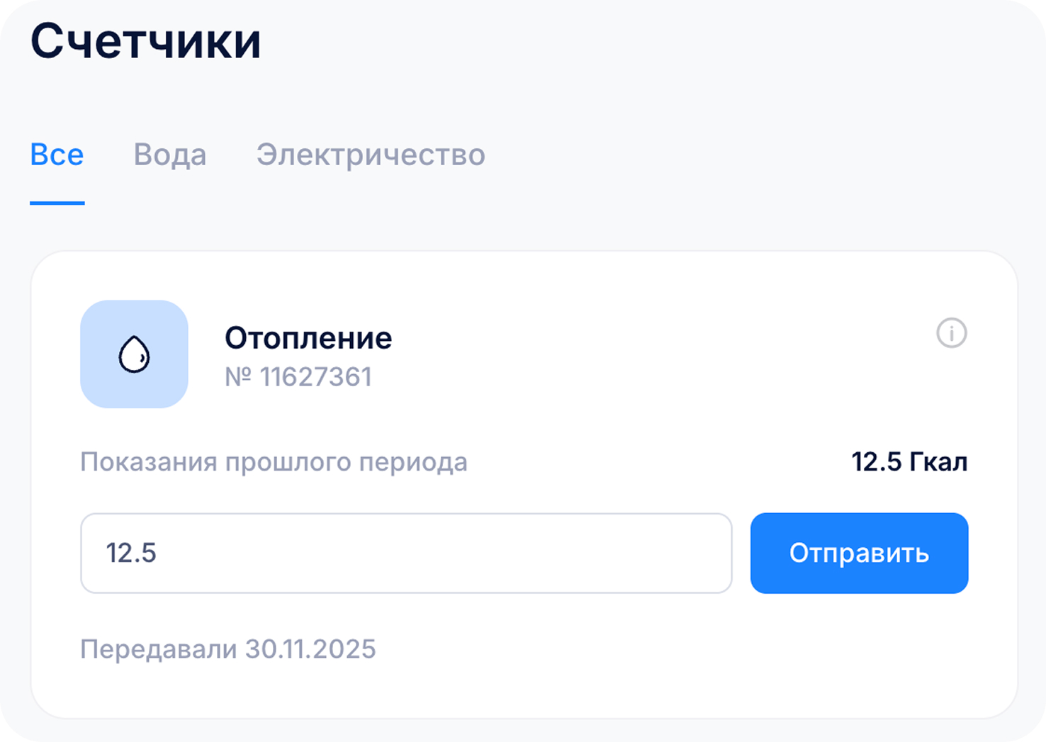 Передавайте показания счетчиков из приложения для точного начисления ЖКУ