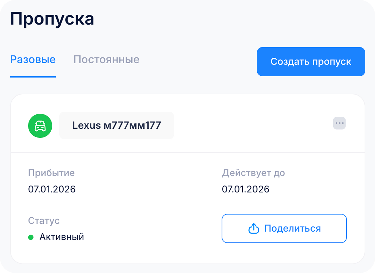 Создание разовых, временных и постоянныйх пропусков для ваших гостей