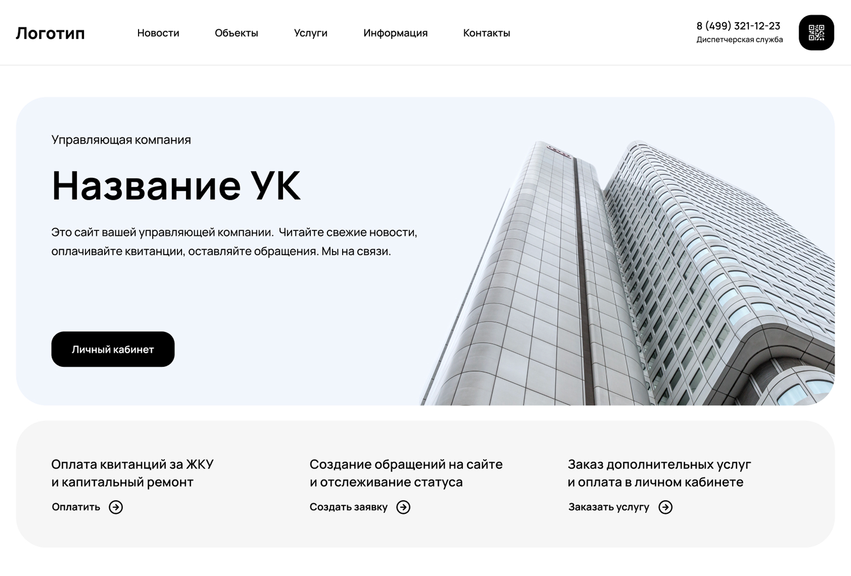 Создание заявок, передача показаний счетчиков, оплата ЖКУ и дополнительных услуг УК, квитанции, создание пропусков и другое
